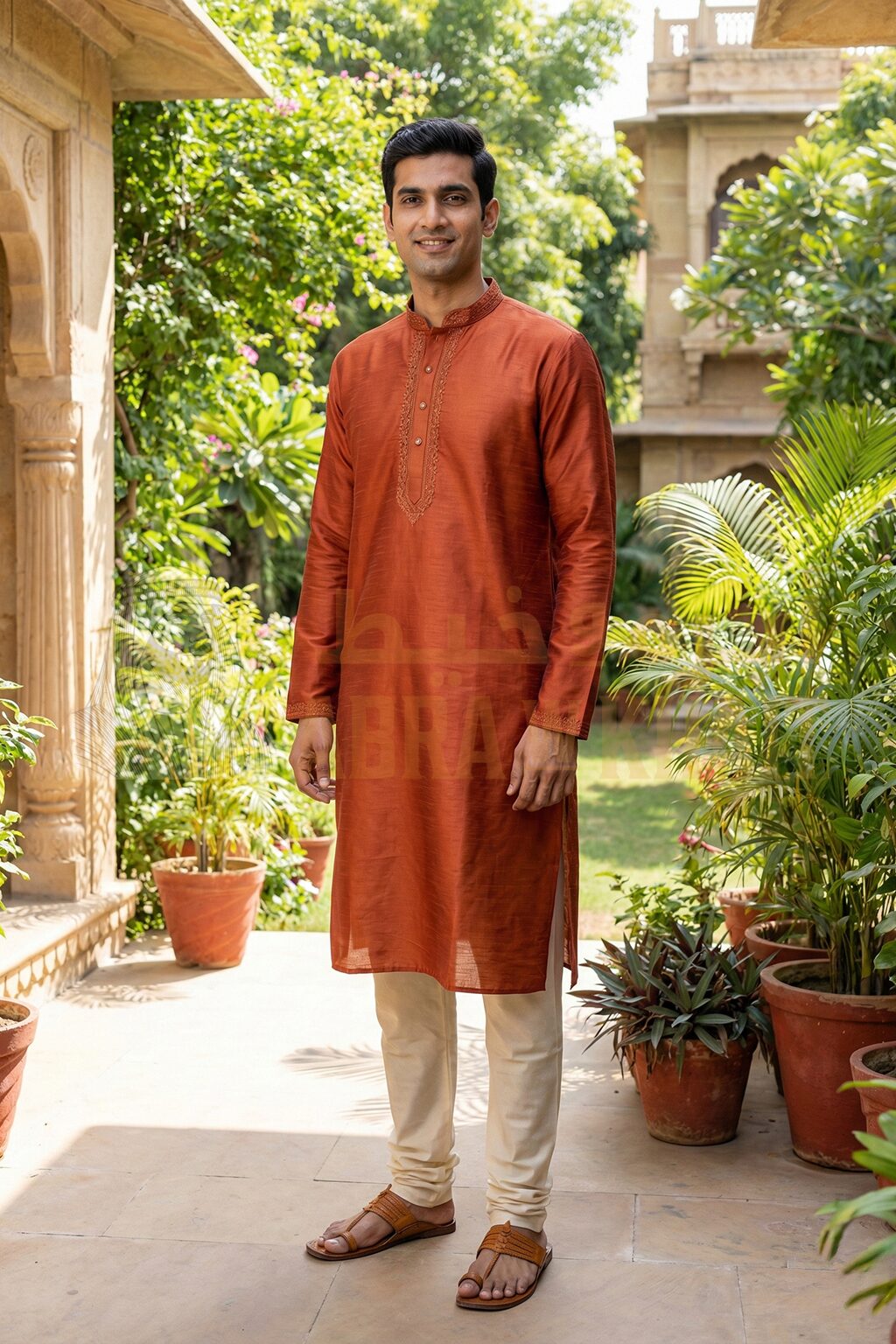 Burnt Orange Indian Kurta Pajama for Men – Premium Festive Wear | ABRA W KHAIT