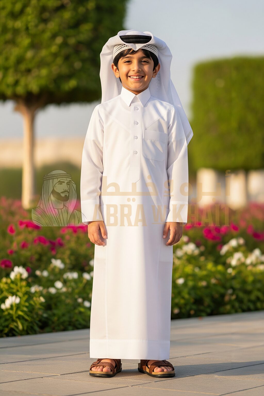 • Authentic Qatari Style – Unique collar and traditional design made specially for kids.